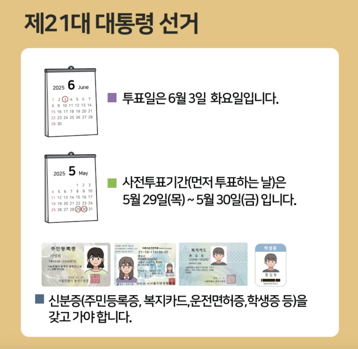 - 사전투표 기간: 2025년 5월 29일(목) ~ 5월 30일(금), 오전 6시 ~ 오후 6시