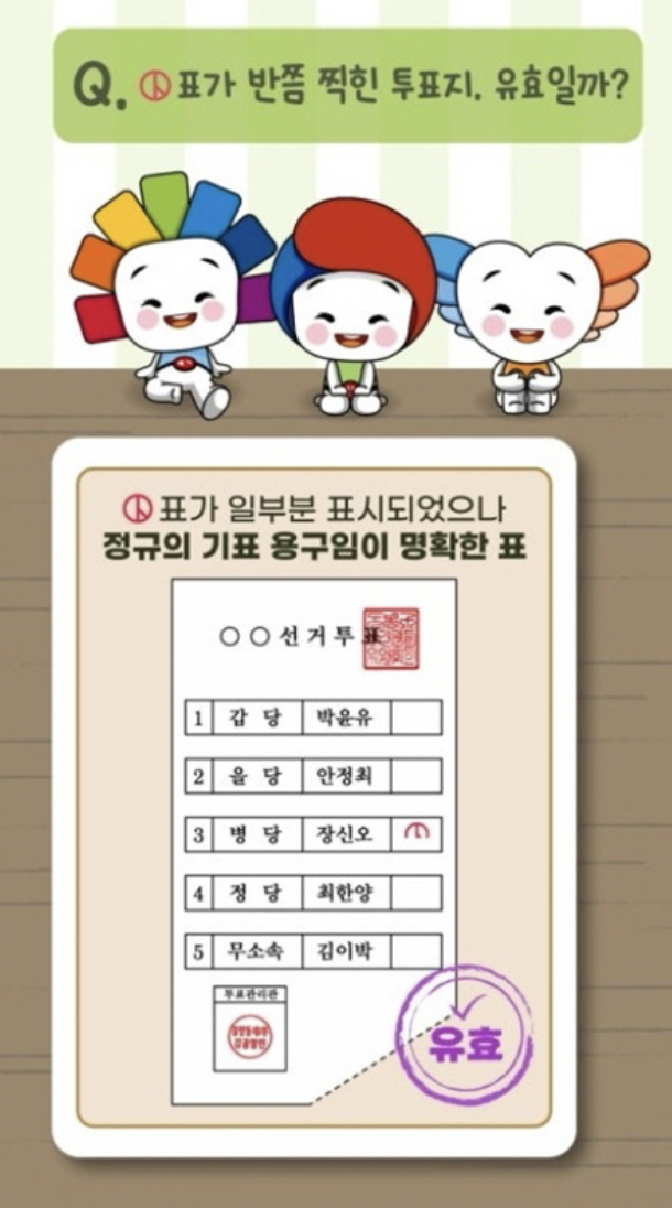 - 복수 기표: 하나의 투표용지에 두 명 이상의 후보자에게 기표할 경우 무효표로 처리됩니다.