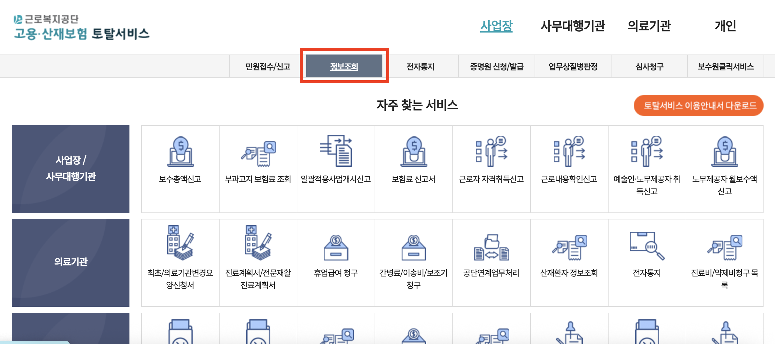 - 고용·산재보험 토탈서비스 접속: http://total.kcomwel.or.kr