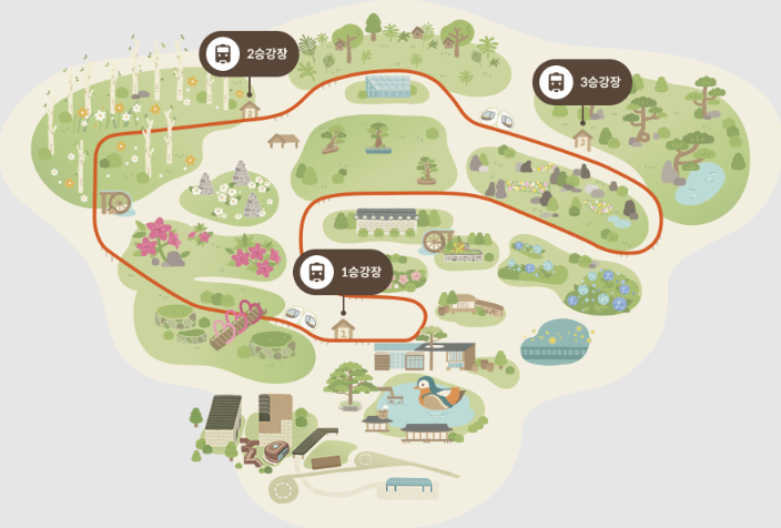 - 1,213m 길이의 순환선으로, 약 20분 동안 숲 속을 편안하게 감상할 수 있습니다.