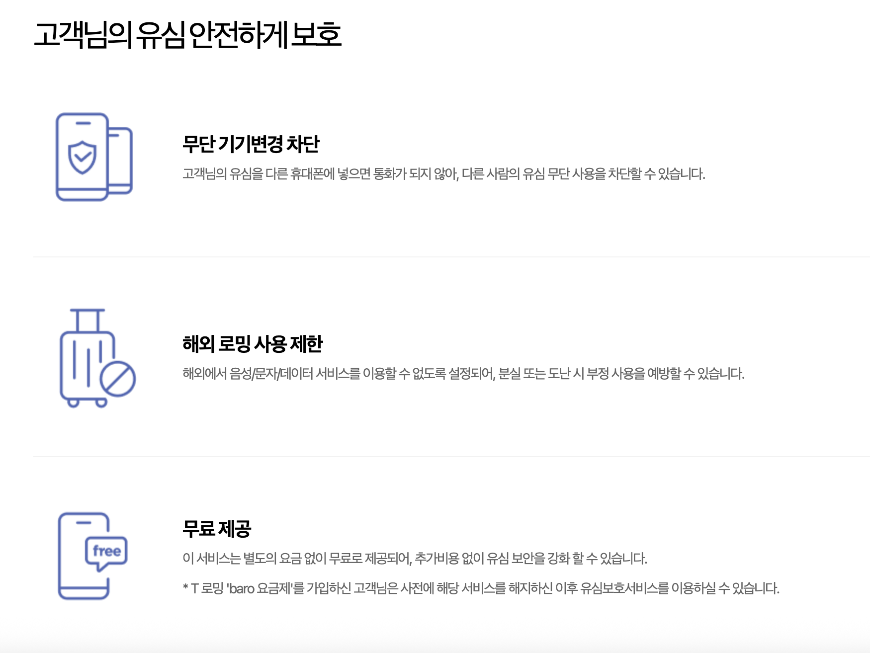 휴대폰의 USIM(유심) 칩을 통한 무단 사용, 복제, 해킹을 방지해 주는 보안 서비스입니다.